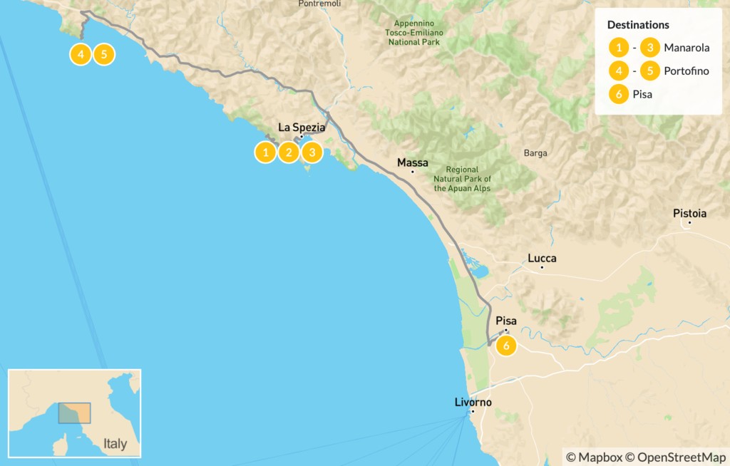 | Day 1 | Arrive in Pisa, Travel to Cinque Terre & Evening Cruise | Manarola |