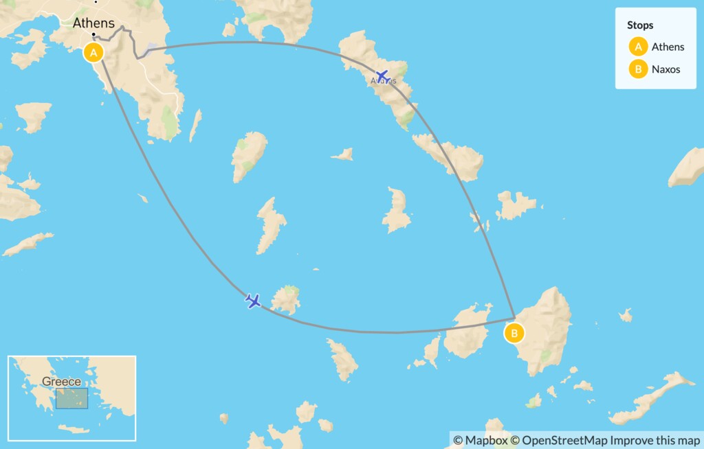 Map of City to Cyclades for Families: Athens and Naxos – 7 Days