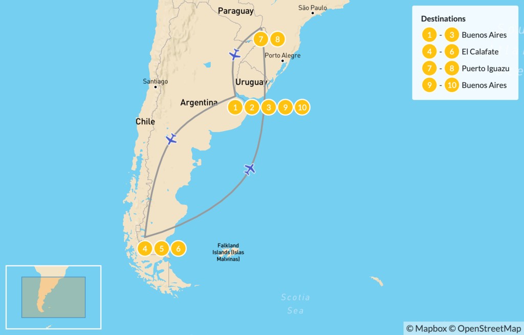 Map of Classic Argentina: Patagonia & Iguazú – 11 Days