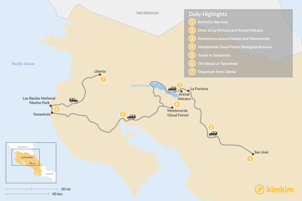 Map of Classic Costa Rica: 7-Day Self-Drive Tour