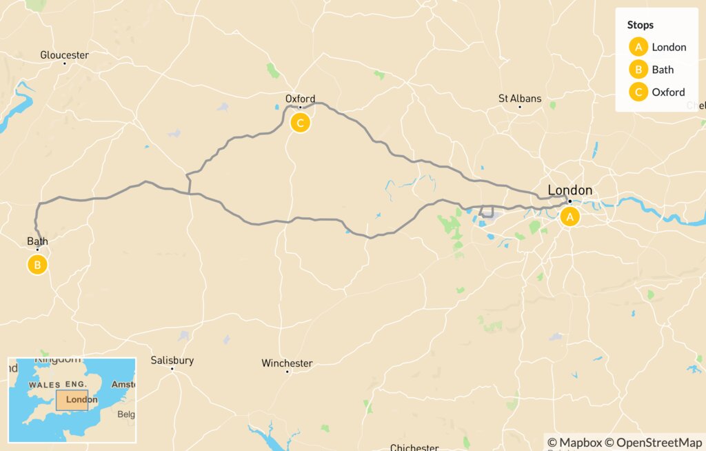 Map of Classic England: London, Oxford & Bath – 5 Days