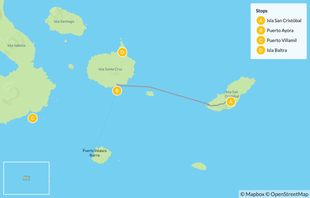 Map of Classic Galápagos Tour: San Cristóbal, Santa Cruz & Isabela – 8 Days