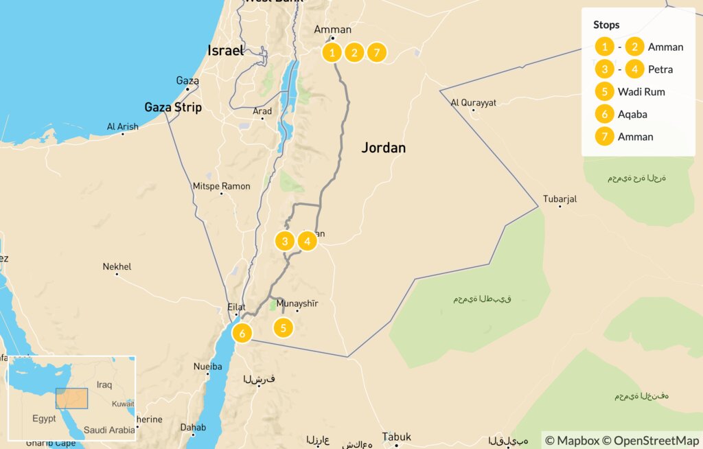Map of Classic Highlights of Jordan: Jerash, Petra, Wadi Rum & Dead Sea – 8 Days
