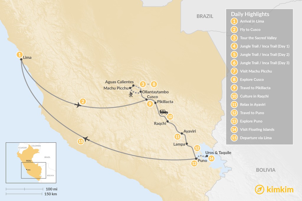 Map of Classic Southern Peru – 15 Days