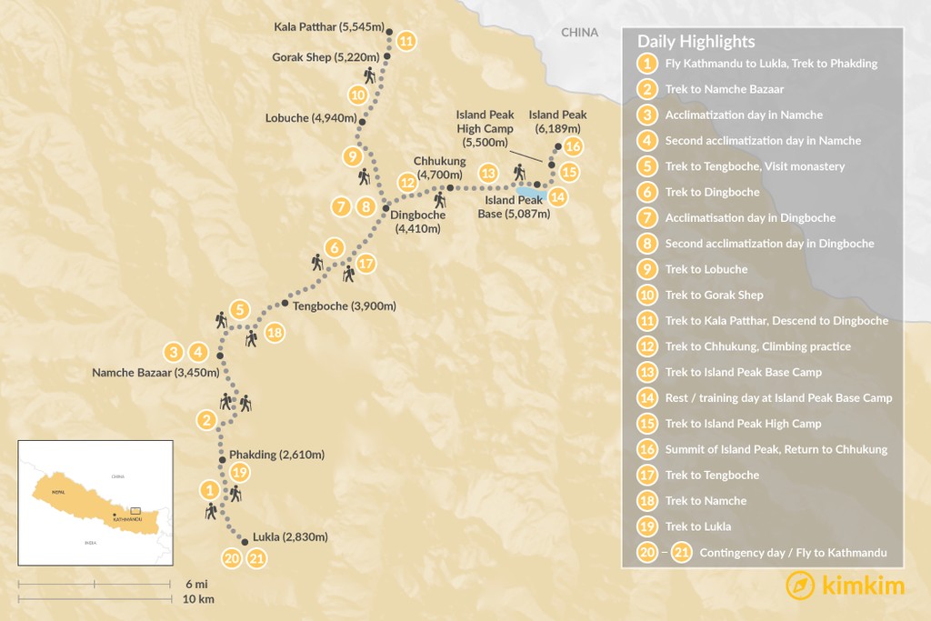 Map of Climb Island Peak: Nepal’s Most Popular Trekking Peak – 24 Days