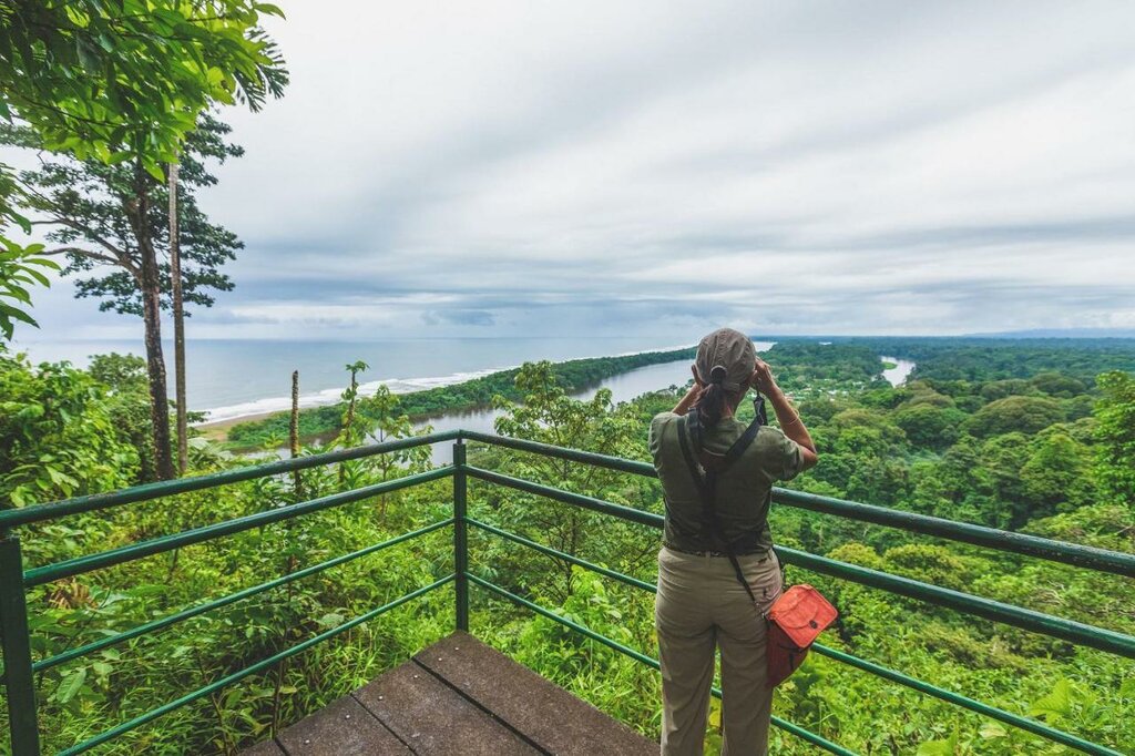 Later, embark on a private 2.5-hour hike up Cerro Tortuguero. Though only 390 feet (119 m) high, this is the region’s tallest peak. It begins with a boat ride to the trailhead, where you’ll begin the 1.25-mile (2 km) out-and-back hike on a jungle path that demands a decent level of physical fitness. During the trek, your expert guide will point out the exotic wildlife, like butterflies, toucans, sloths, and various monkeys. When you reach the top, you’ll be rewarded with an inspired view of Tortuguero, spanning the canals out to the Caribbean. After hiking back to the trailhead, you’ll return to the lodge.