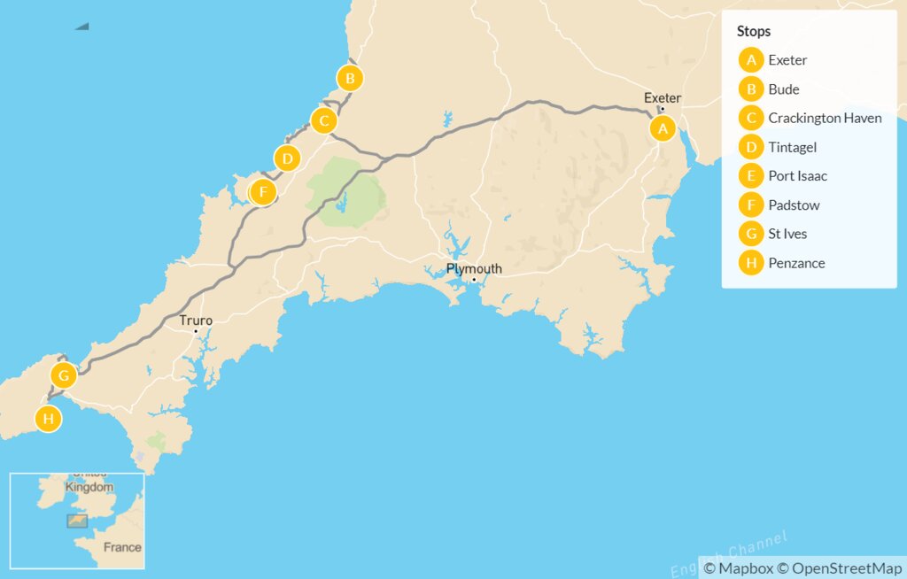 Welcome to the UK! You’ll arrive in Exeter, a beguiling city in southwest England with excellent access and transport links to South Devon and Cornwall. With over 2,000 years of history and a Gothic cathedral thought to be one of the finest examples of its kind, the city’s university is regularly ranked within the top 10 in Europe, giving the town a refreshing and independent vibe alongside its historic charms.