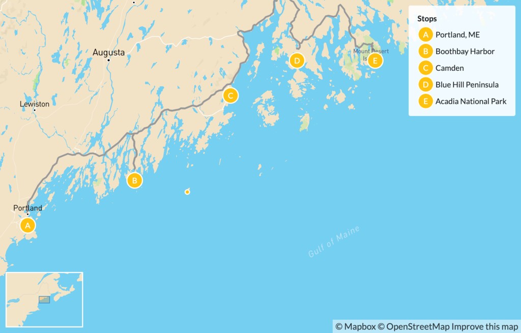 | Day 3 | Portland to Boothbay Harbor | Boothbay Harbor |