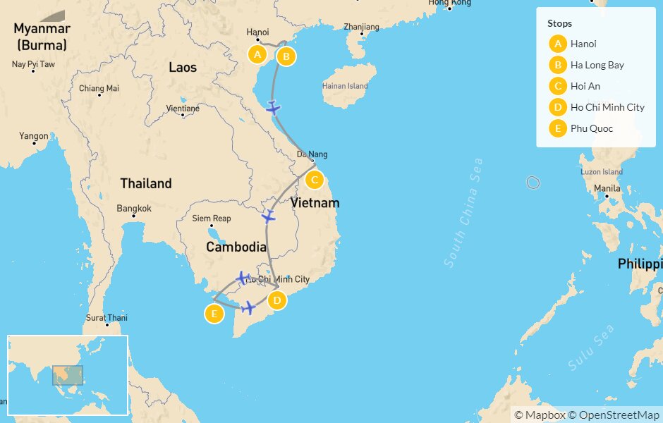 Map of Coastal Vietnam: Cities, Countryside & Islands – 12 Days