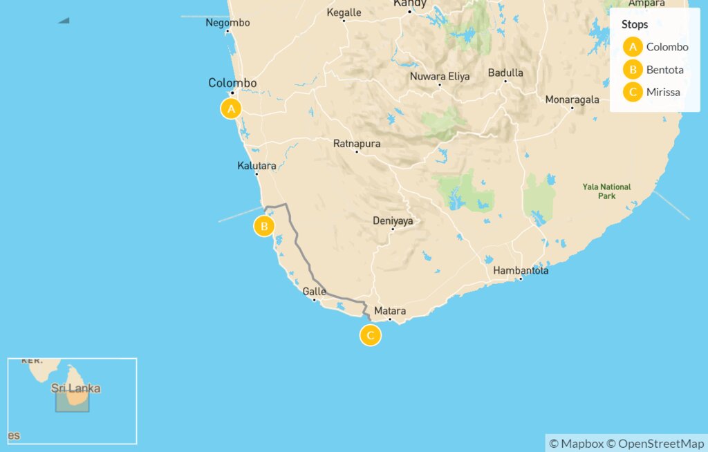 Map of Coastal Wonders & Cultural Highlights of Southern Sri Lanka – 8 Days