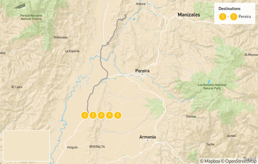 | Day 1 | Arrive in the Zona Cafetera – Coffee Finca Tour | Pereira |