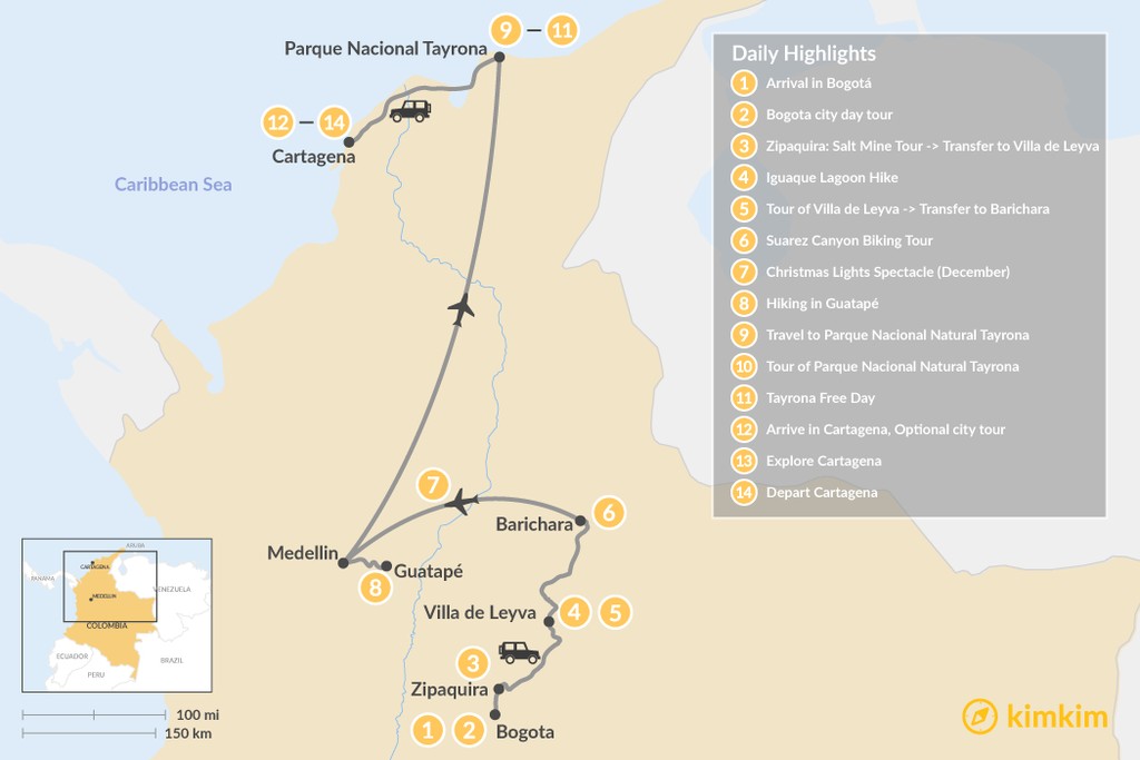 Map of Colombia: From the North to the Caribbean Coast – 16 Days