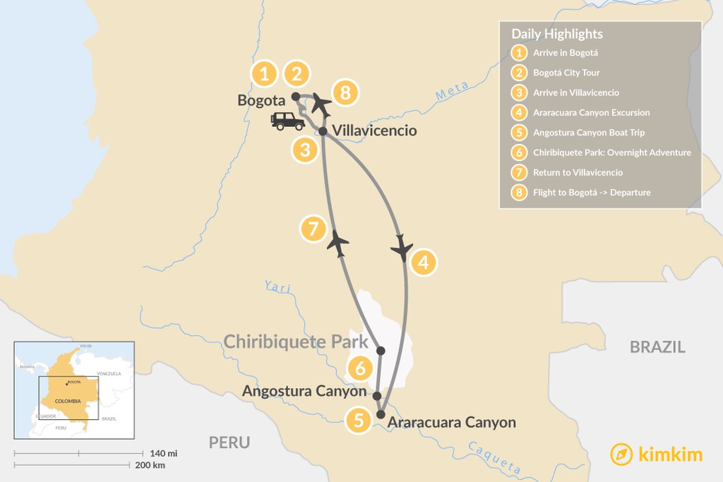 Map of Colombia’s Amazon Rainforest & Canyon Tour – 8 Days