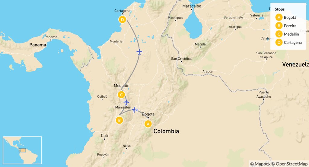 Map of Colombia’s Best Cities & Coffee Region – 10 Days