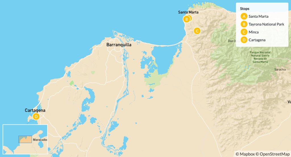 Map of Colombia’s Caribbean Coast & Islands – 11 Days