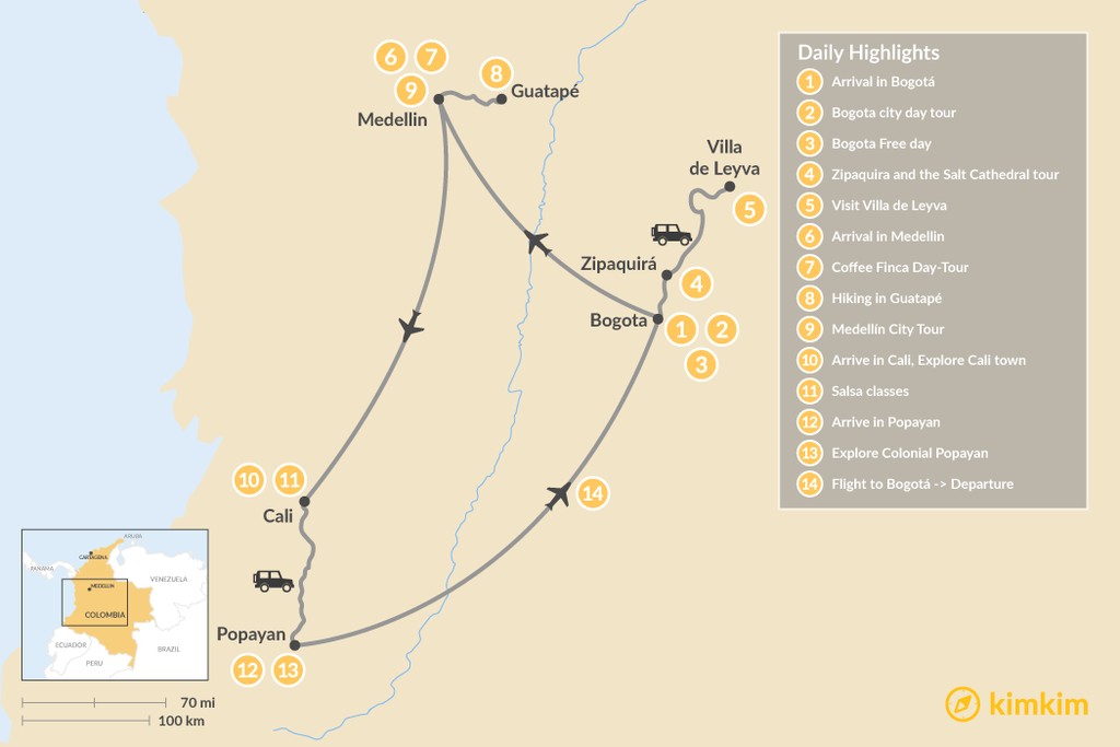 Map of Colombia’s Cultural Interior – 14 Days