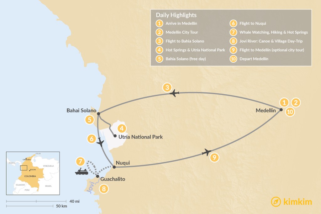 Map of Colombia’s Wild Pacific Coast – 10 Days
