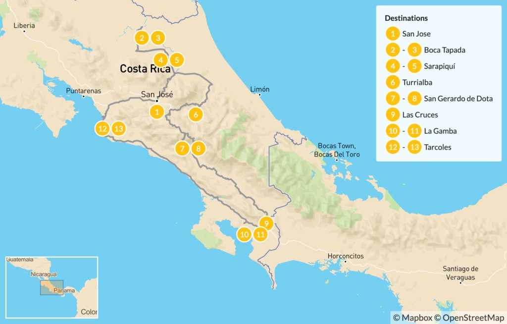 | Day 1 | Arrival in Costa Rica – Experience San José’s Culture | San Jose |