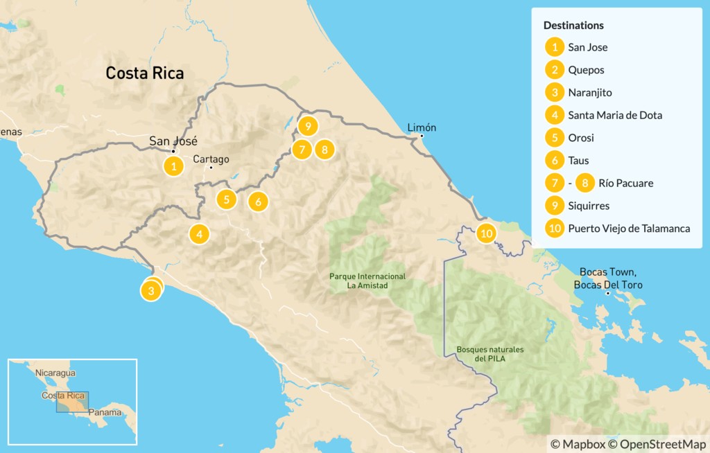 Map of Costa Rica Cycling & Rafting Highlights: Manuel Antonio & the Pacuare – 11 Days
