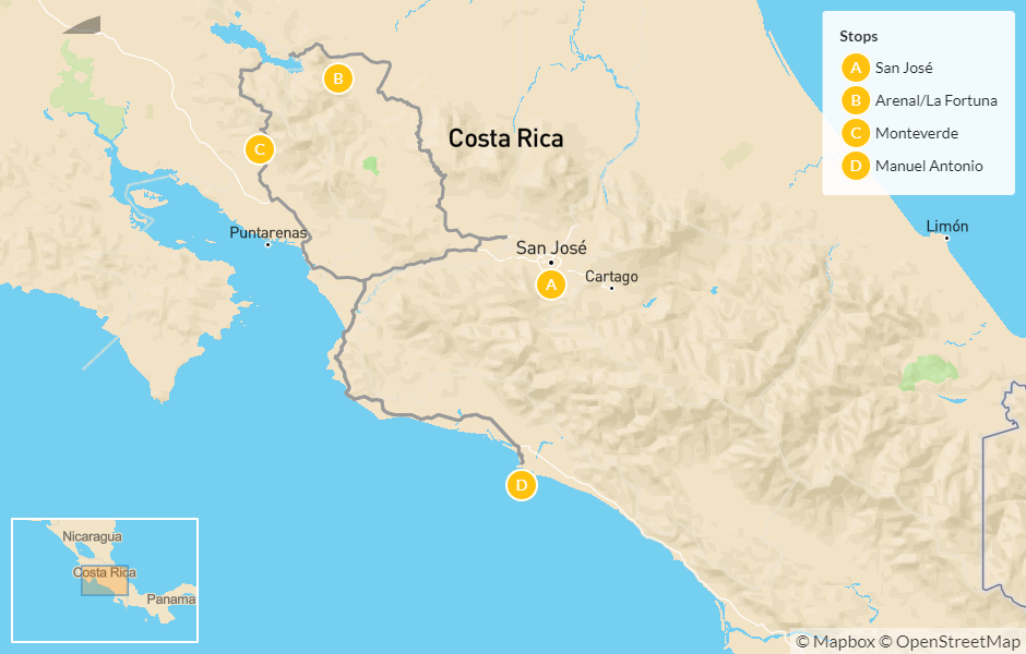 Map of Costa Rica for Families: Outdoor Adventures & Wildlife – 10 Days