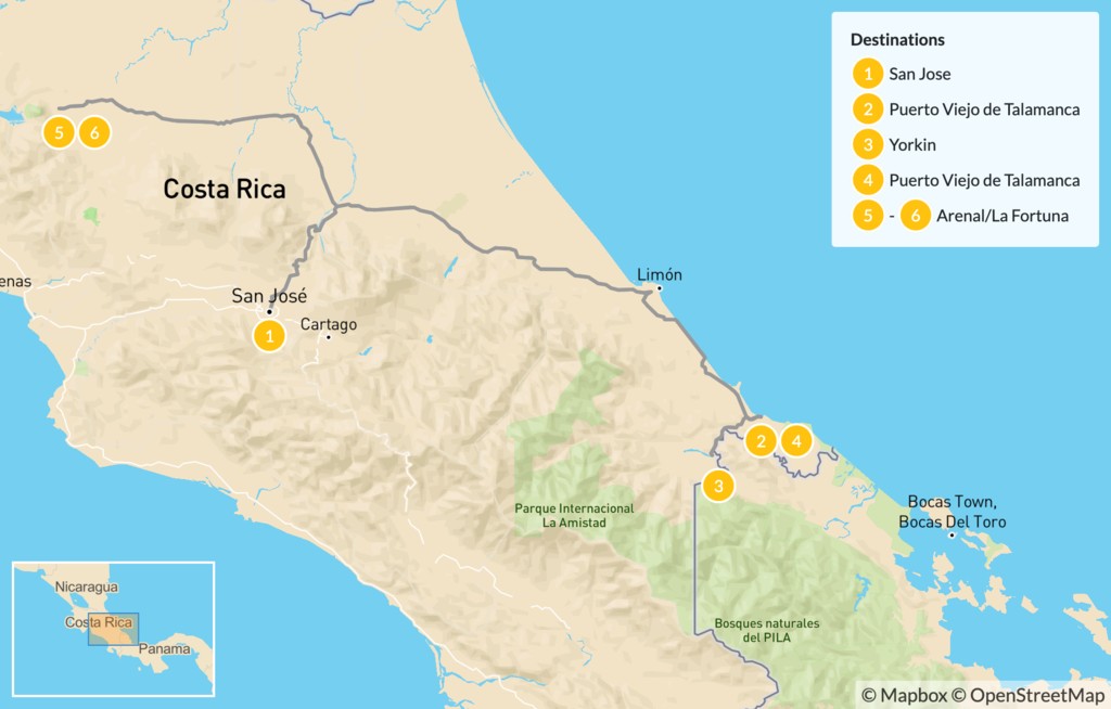 Map of Costa Rica Indigenous Culture & Arenal Tour – 7 Days