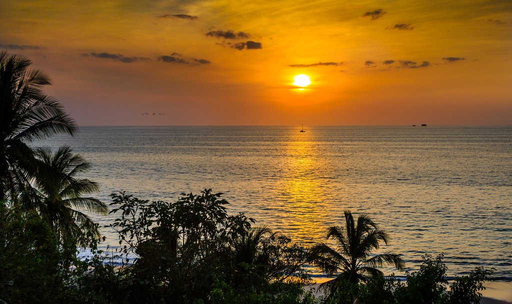 But the day doesn’t end there. After the Osa Trail, you’ll embark on a hike down through secondary rainforest to the coast of the Osa Peninsula and the village of Matapalo. The beautiful Pacific beaches here are tranquil and deserted, making them almost undiscovered natural wonders. En-route, your guide will point out some of the most colorful creatures in the rainforest, from endangered scarlet macaws to various species of primates, including howler and capuchin monkeys.