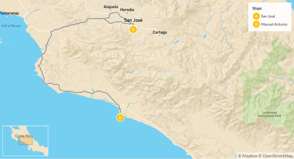 Map of Costa Rican Nature Adventure in Manuel Antonio – 5 Days