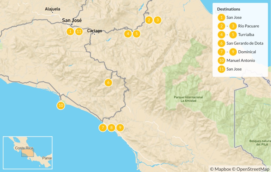 | Day 1 | Arrive in Costa Rica – Experience San José’s Culture and History | San Jose |