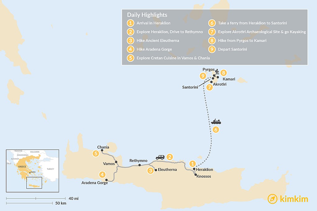 | Day 1 | Arrival in Heraklion | Heraklion |