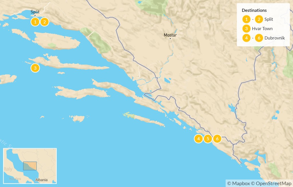 Map of Croatia Family Vacation: Split, Hvar, & Dubrovnik – 6 Days