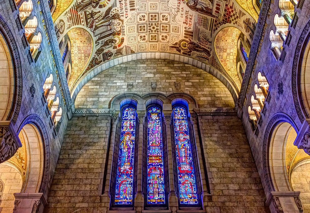 Start your last morning in Québec City with a guided tour to Montmorency Falls, just 15 minutes north of the city. Admire the 272-foot (83 m) cascade, making it 98 feet (30 m) taller than Niagara Falls, from the different observation decks, then cross the suspension bridge for a bird’s-eye view. Continue to the Sanctuaire Sainte-Anne-de-Beaupré to admire the basilica’s grand exterior before stepping inside to see the ornate altars, sacred artworks, and stained glass windows. Stop at Chocolaterie de l’Ile d’Orléans next to indulge in Belgian chocolates or ice cream in the summer.