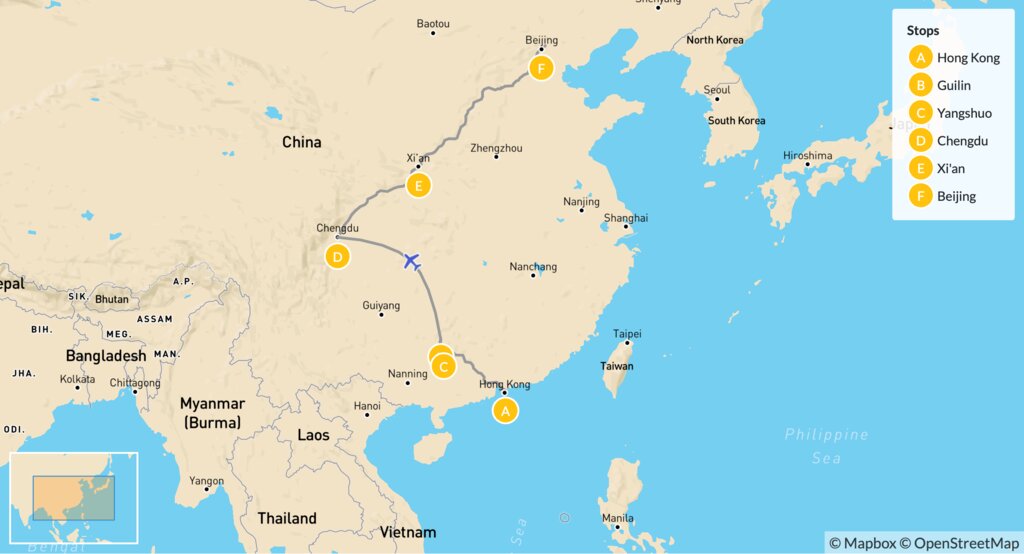 Map of Culinary Adventure Through China: Hong Kong to Beijing – 13 Days