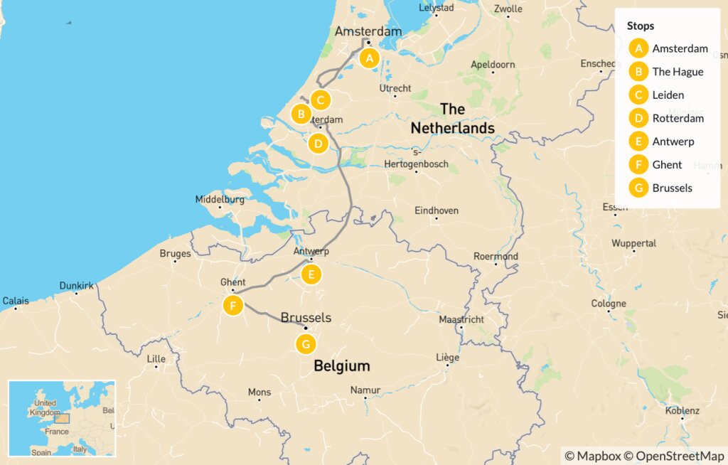 Map of Culinary Tour of the Netherlands & Belgium – 14 Days