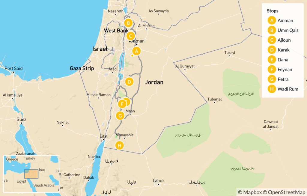 Map of Cultural & Culinary Tour of Jordan – 13 Days