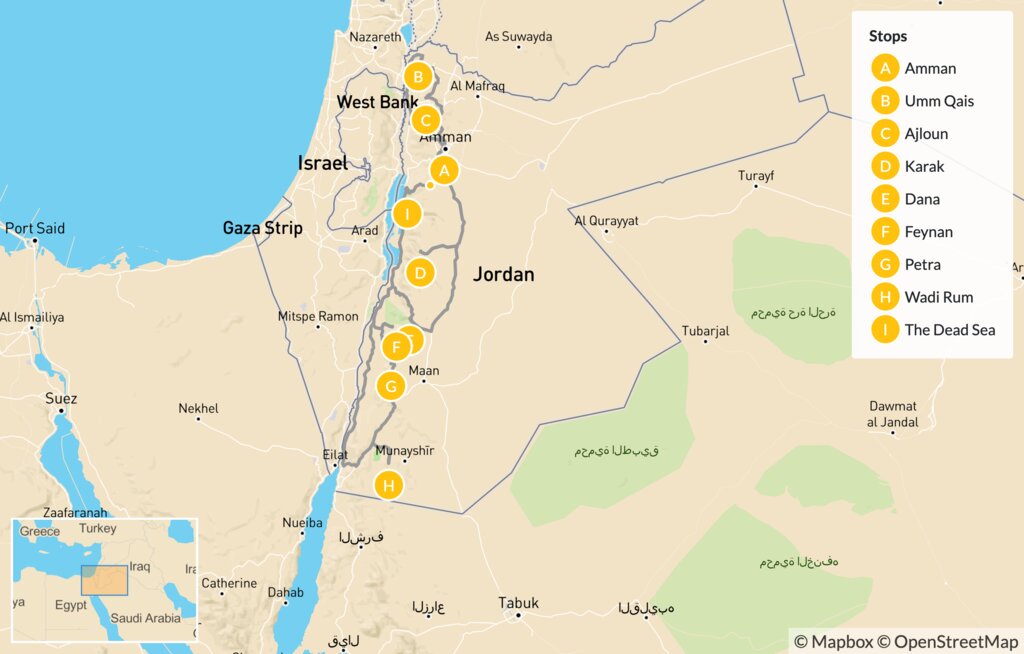 Map of Cultural & Culinary Tour of Jordan – 16 Days