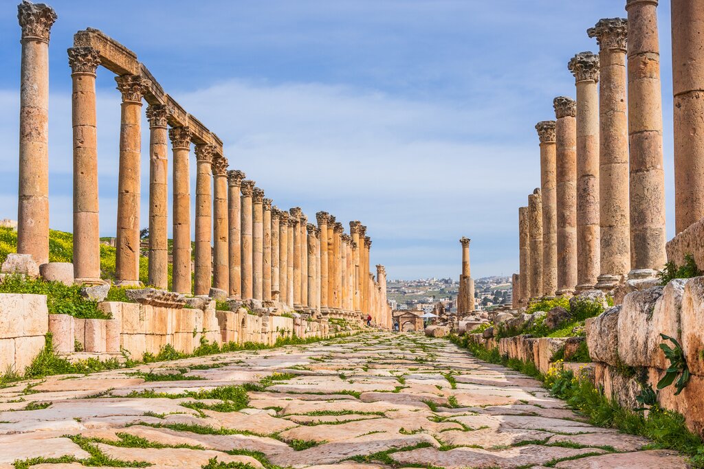 Today starts with a 1.5-hour transfer from Amman to Pella, an ancient archaeological site estimated at over 6,000 years old. With the help of your private guide, you’ll uncover well-preserved Roman ruins and Byzantine temples tucked in rolling green hills. Afterward, get back on the road for the 40-minute transfer from Pella to Umm Qais, where you’ll be spending the night. This city was once known as Gadara and is home to impressive ruins, including ancient theaters and Ottoman villages.