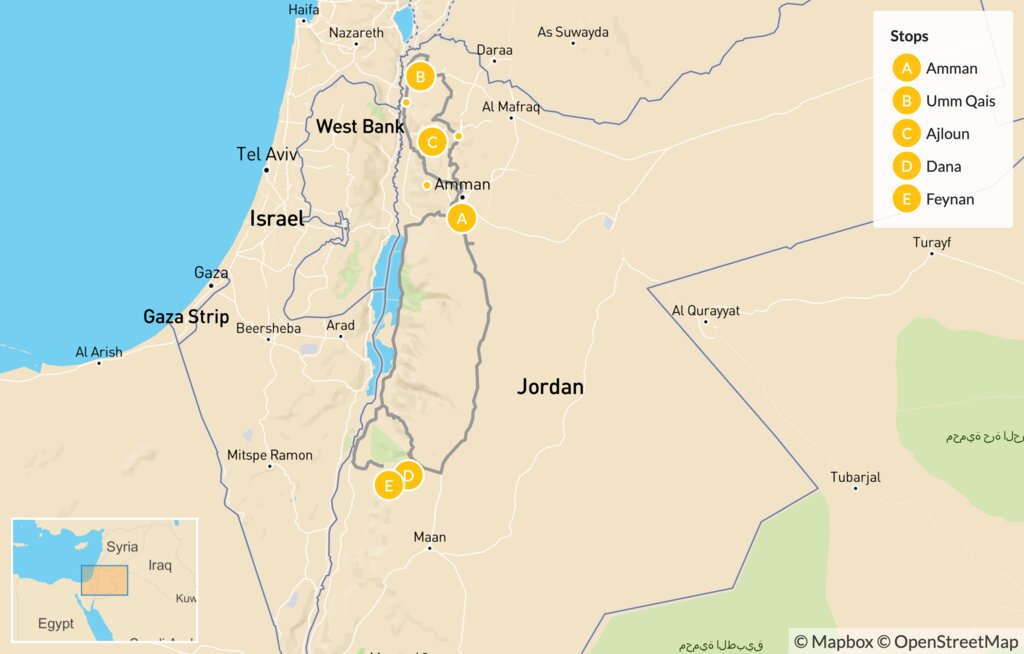 Map of Cultural & Culinary Tour of Jordan – 8 Days
