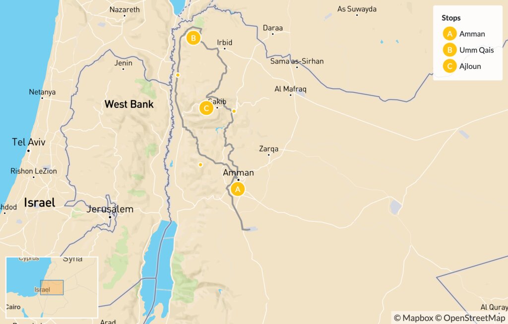 Map of Cultural & Culinary Tour of Northern Jordan- 6 Days