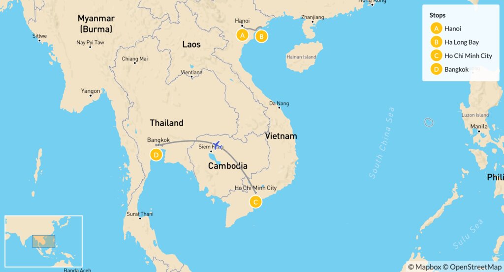 Map of Cultural Gems of Vietnam & Thailand – 10 Days