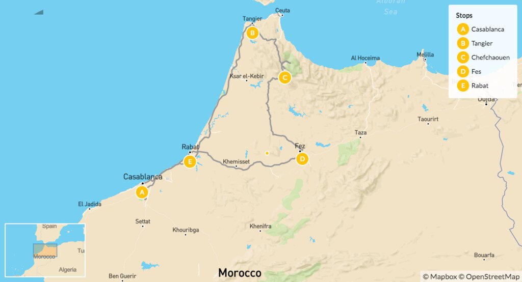 Map of Cultural Highlights of Northern Morocco – 10 Days