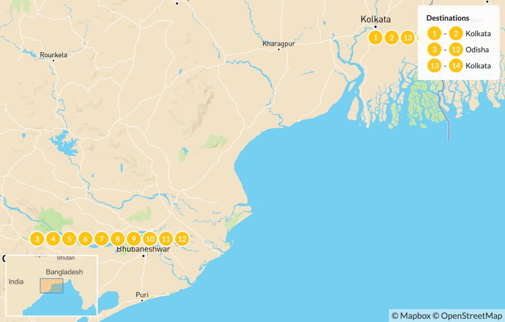 Map of Cultural India: Ancient Cities and Villages of Odisha – 14 Days