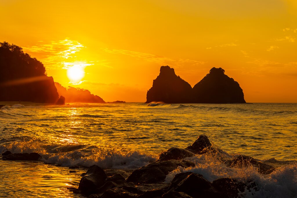 Say goodbye to Recife this morning and head to the airport for a 1.5-hour flight to Fernando de Noronha, a volcanic island in an archipelago of the same name, home to 21 islands and islets. Check into your hotel and get ready for a four-hour sunset boat tour. Once on board, you’ll cruise to Morros Dois Irmãos, two towering rock formations rising from the sea, while you enjoy delicious fresh fish and a cocktail. Head to Praia da Conceição next for a refreshing swim and to watch the sun begin its descent.