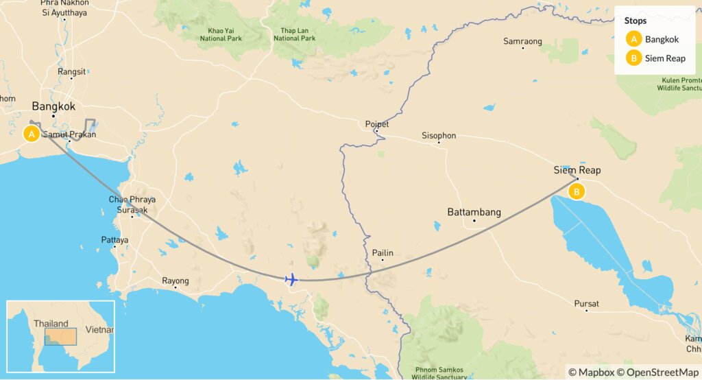 Map of Cultural Treasures of Thailand & Cambodia – 7 Days