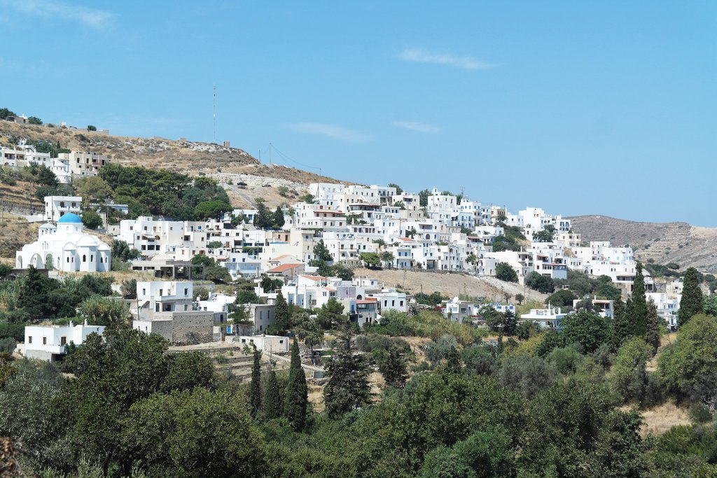 Pass the statues along with olive groves, orchards, and a shady riverside before you take a well-deserved break in Ano Potamia on the riverbank. Then continue your climb up to Apana Kastro, the upper castle area, built in this defensive position in the 13th century to control access to the central island farms. You can keep going all the way up to the peak or just take in the panoramic views of Naxos Town, port, and surrounding villages from here.