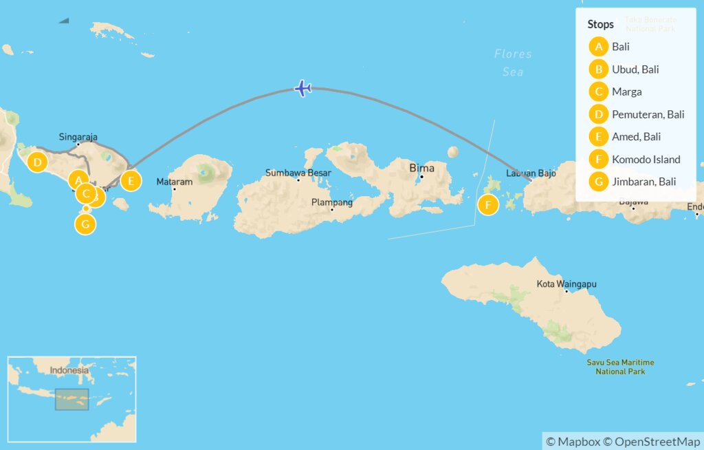Map of Culture & Cruising in Bali & the Komodo Islands – 14 Days