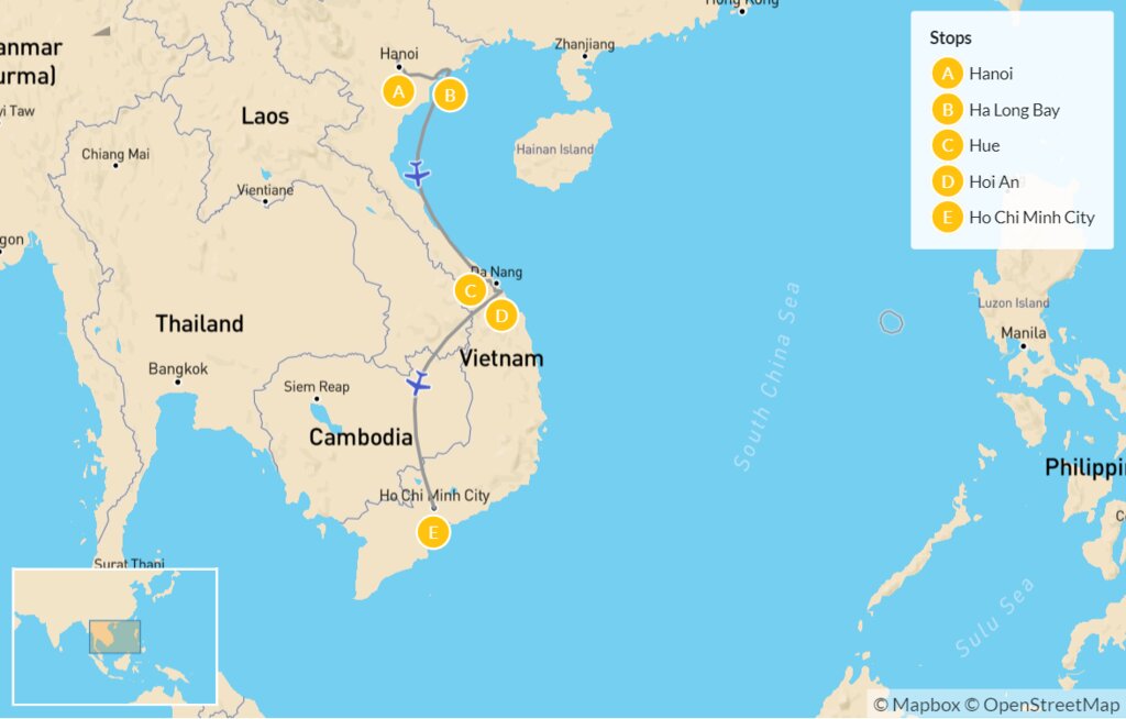 Map of Culture & Cuisine of Vietnam – 12 Days