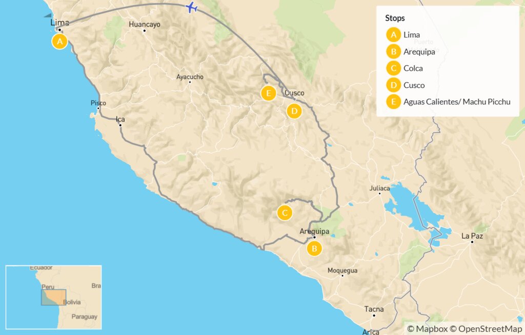 Map of Culture & History Tour of Peru: Lima to Machu Picchu- 10 Days