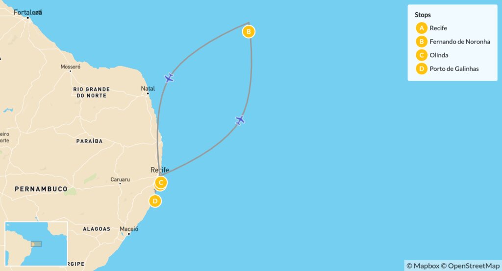Map of Culture, Islands & Beaches on Brazil’s Northeast Coast – 9 Days