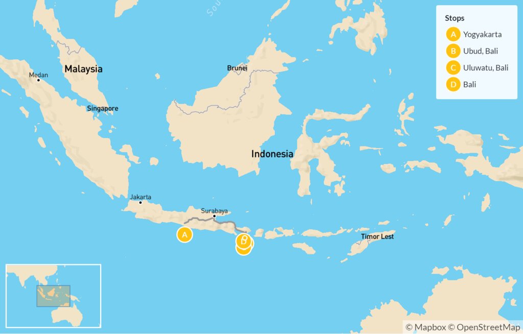 Map of Culture & Nature in Indonesia: Yogyakarta & Bali – 8 Days