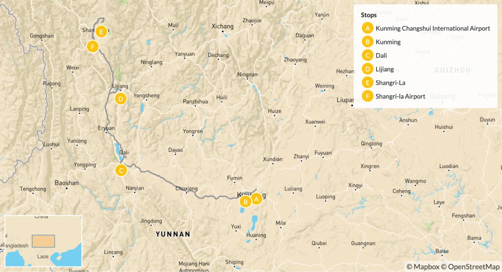 Map of Culture & Nature Tour of China’s Yunnan Province – 8 Days